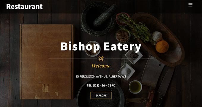 Ele também inclui um sistema de reserva de mesa, além de modelos de página personalizados para o menu do restaurante e a página do blog.