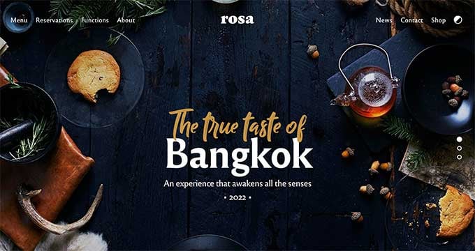 O Rosa LT também possui um gerenciamento de menu de restaurante fácil de usar. Você também obtém outras funcionalidades cruciais, como um sistema de pedidos e reservas online por meio do OpenTable. O tema inclui vários estilos e esquemas de cores que podem ser facilmente aplicados usando o personalizador ao vivo do WordPress.