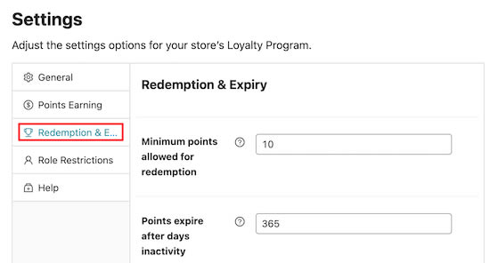 Depois disso, clique na opção de menu “Redemption & Expiry”.