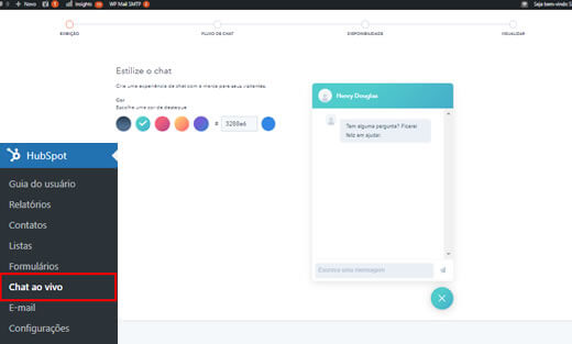 Da mesma forma, você também pode criar um widget de chat ao vivo visitando a página HubSpot » Chat ao vivo e configurar um chat ao vivo.