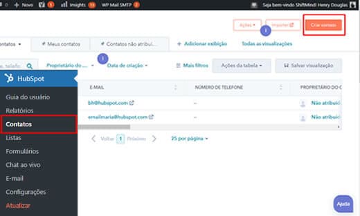 Você também pode importar seus contatos para o HubSpot CRM. Basta ir à página HubSpot » E-mail.