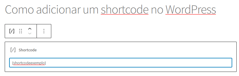 Depois de adicionar o bloco de shortcode, você pode simplesmente inserir seu shortcode nas configurações do bloco.