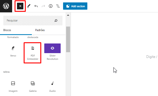 Como adicionar um visualizador de PDF no editor de blocos