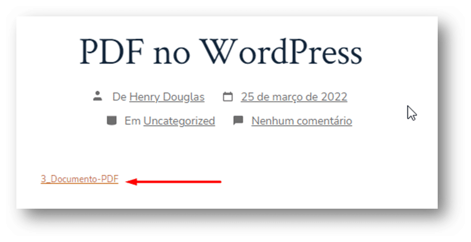O PDF será adicionado ao seu documento. Você não verá uma visualização do PDF enquanto estiver editando o post. Em vez disso, o bloco contém a URL do arquivo.