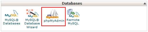A primeira coisa que você precisa fazer é fazer o login no seu cPanel. Role para baixo até a seção de bancos de dados e clique em phpMyAdmin.