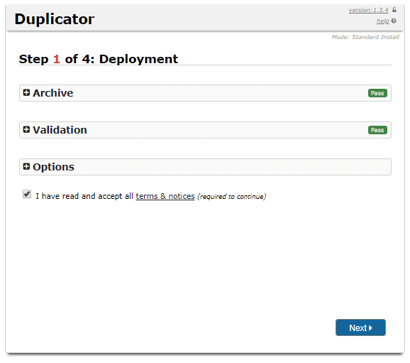 Isso iniciará o assistente do Duplicator, onde você precisa clicar no botão Next para continuar.