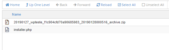 Não importa onde você está copiando os arquivos, é necessário certificar-se de que a pasta esteja completamente vazia e não tenha outros arquivos ou pastas dentro dela, exceto o arquivo installer.php e seu arquivo zip de backup.