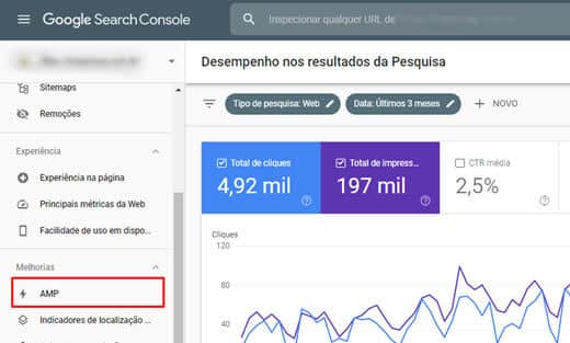 Faça login no painel do Google Search Console e acesse Melhorias » AMP: