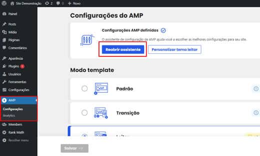 O plugin tem ótimas opções de configuração. Conta inclusive com um Assistente de Configuração que permite que pessoas não técnicas configure e personalize as configurações do Google AMP com alguns cliques: