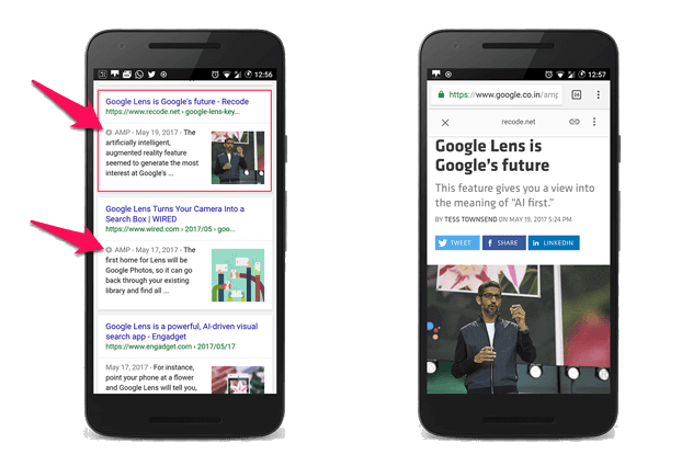 Apesar de suas limitações, o Google está promovendo as páginas AMP, dando-lhes um impulso na pesquisa móvel.