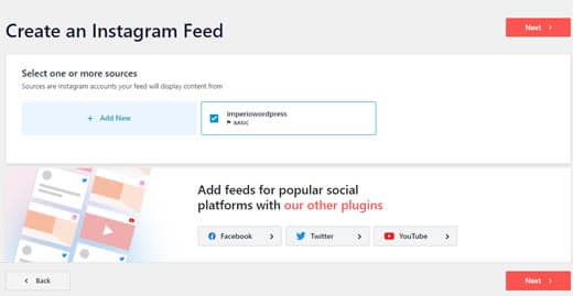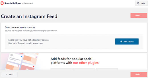 A seguir você terá que clicar no botão “Add Source” para adicionar uma conta empresarial do Instagram:
