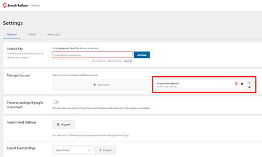 Se você tiver várias contas de usuário conectadas, poderá usar o shortcode[instagram-feed type=”user” username=”imperiowp”] para especificar uma conta. Altere imperiowp para o nome de usuário que você deseja.