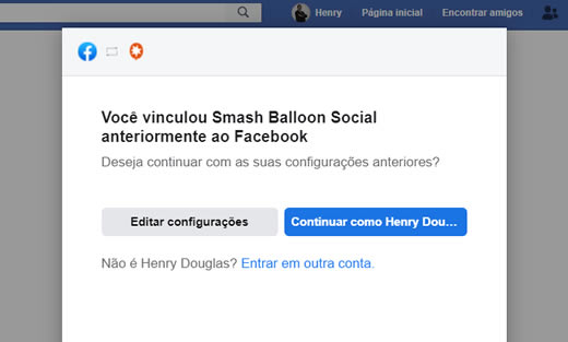 A seguir você terá que fazer login na plataforma do facebook, clique em “Continuar como…”: