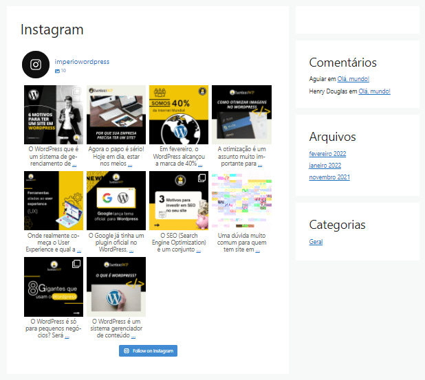 Mostrando um feed de suas fotos do Instagram no WordPress