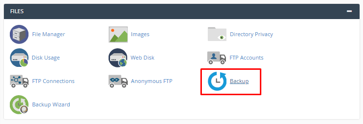 Basta acessar o painel de controle de hospedagem e ir até a seção de arquivos, onde você verá o botão Backup.