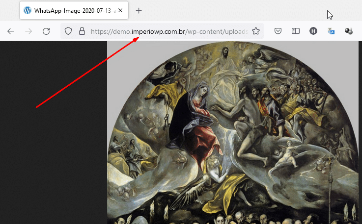 Quando a imagem for aberta na nova guia, observe a URL na barra de endereço. Esse é a URL da sua imagem do WordPress.