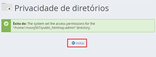 A seguir você verá uma tela como esta, clique em Voltar para retornar à página de configuração: