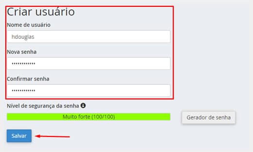 Agora você deverá criar um usuário para acesso ao diretório protegido, preencha os campos conforme indicado: