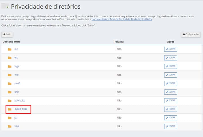 Em seguida, clique no botão “Editar” que fica na mesma linha da pasta wp-admin: