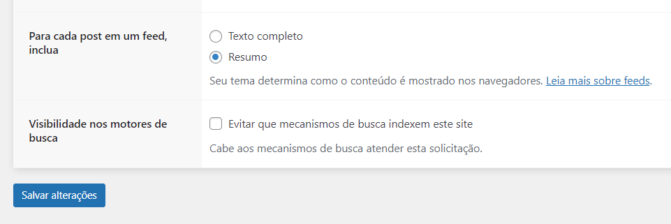 - Resumo em vez de conteúdo completo: No painel administrativo do WordPress, vá para Configurações > Leitura e selecione a opção Resumo em “Para cada artigo em um feed, mostrar”.