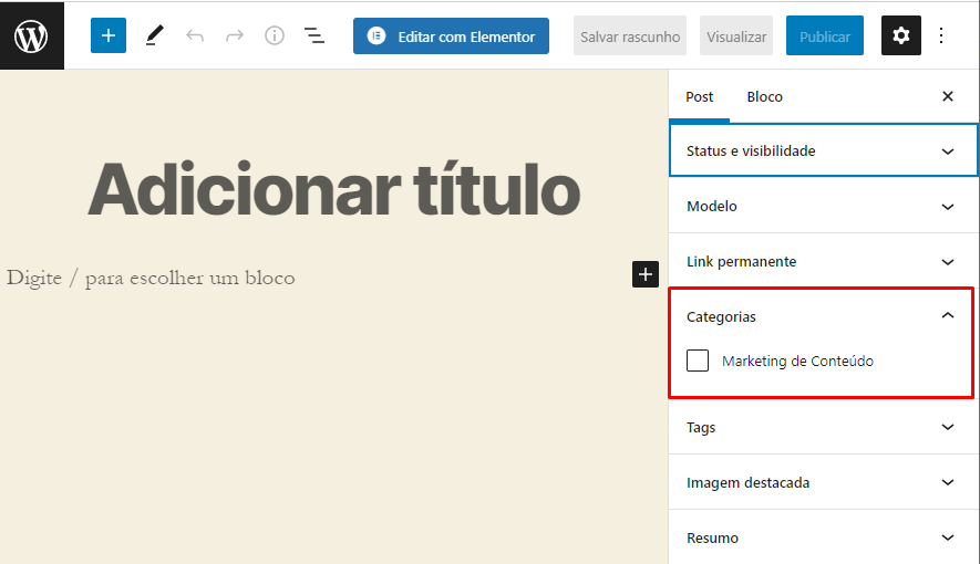 Agora, quando o autor entrar no editor de conteúdo do WordPress para criar um post, ele verá o seguinte em sua barra lateral: