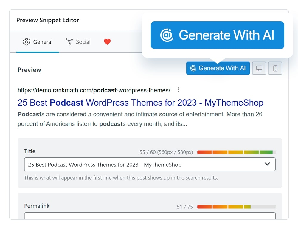 - Otimização de SEO: Sugestões de palavras-chave e melhorias na estrutura do conteúdo para um melhor ranqueamento nos motores de busca. O popular plugin Rank Math SEO usa IA e ChatGPT para facilitar a criação de títulos de artigos e metadescrições de alta qualidade.