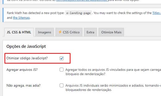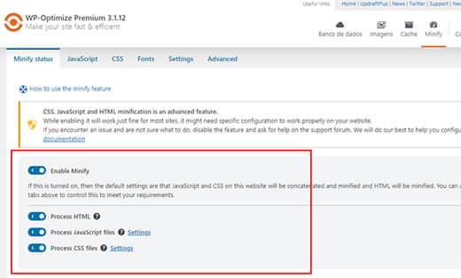 Por padrão, ele não ativa as opções de otimização de JavaScript e CSS. Essas otimizações podem afetar potencialmente a aparência do seu site ou alguns recursos, e é por isso que o plugin permite que você habilite essas configurações opcionalmente.