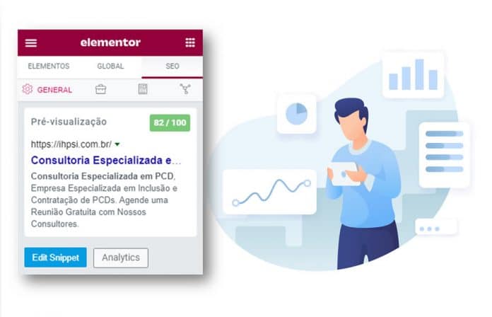 Configurações e otimização de SEO nativamente integrado no Elementor