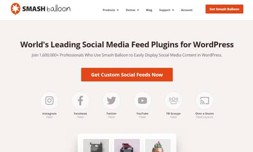 O plugin Smash Balloon também oferece um feed do Facebook, YouTube e Twitter.