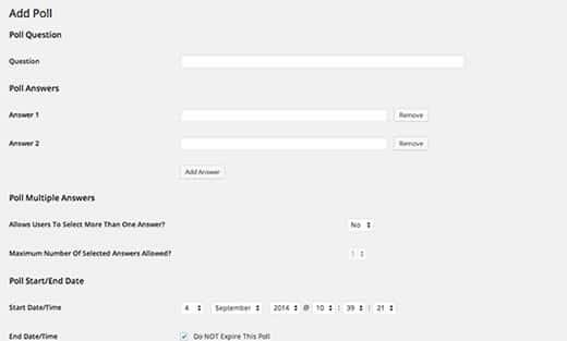 Se você está procurando uma solução de pesquisa simples para seus usuários participarem, o WP-Polls é uma opção fácil e gratuita. Ao contrário de outros plugins nesta lista, ele não possui um construtor de formulários e você só pode usar botões de opção ou caixas de seleção para coletar respostas, o que o torna bastante limitado.