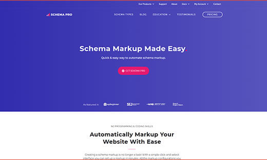 Os principais plugins de SEO para WordPress, como Rank Math SEO, já adicionam dados de rich snippets estruturados ao seu site. No entanto, se você precisa de mais tipos de esquema ou deseja estender a funcionalidade de seu plugin SEO para WordPress existente, o Schema Pro é o caminho a percorrer.
