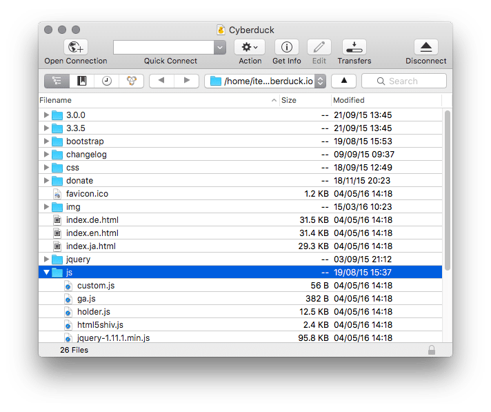 CyberDuck é um extremamente fácil de usar e é um cliente FTP adequado para iniciantes, bem como usuários avançados.