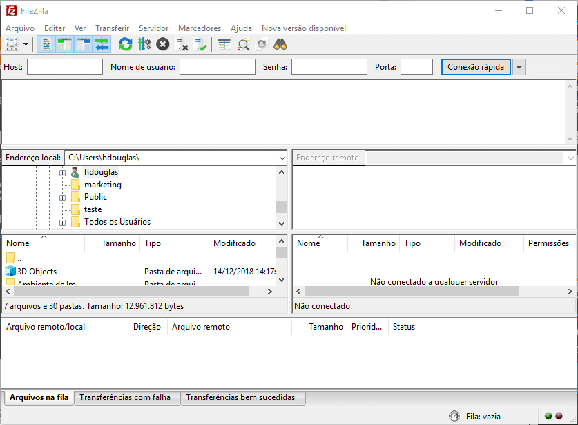 O FileZilla é um cliente FTP gratuito para Windows, Mac e Linux.