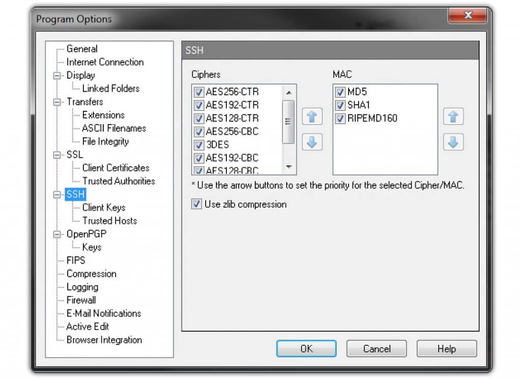 O WS_FTP Professional é um popular cliente FTP comercial para Windows. Ele oferece segurança de nível empresarial com SSH e criptografia validada por AES, FIPS 140-2 de 256 bits e criptografia de arquivos OpenPGP para transferências.