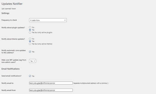 Este plugin usa o cron do WordPress para verificar se há atualizações em seu site a cada hora. Você pode alterar para uma ou duas vezes ao dia. Quando houver uma nova atualização disponível, este plugin enviará a você uma notificação por e-mail.
